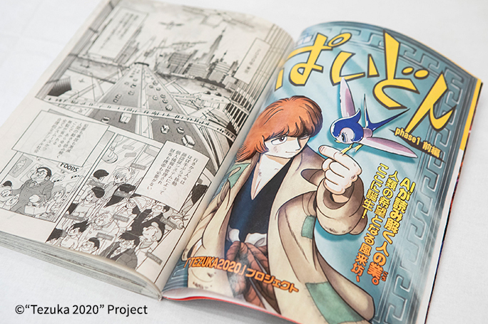 - L’œuvre d’Osamu Tezuka, le « Dieu du manga », a laissé une trace dans les mémoires de nombreuses générations. Future Memories : Phaedo est un projet qui vise à créer une nouvelle œuvre d’Osamu Tezuka trente ans après sa mort. Pour y parvenir, trois IA ont été développées et entraînées à l’aide de l’apprentissage automatique. Elles ont été chargées de générer l’histoire, de nouveaux personnages et les dessins. Les modèles entraînés ont ensuite été utilisés pour créer un court manga de vingt-deux pages. La narration repose sur une intrigue scientifique liée au changement climatique.