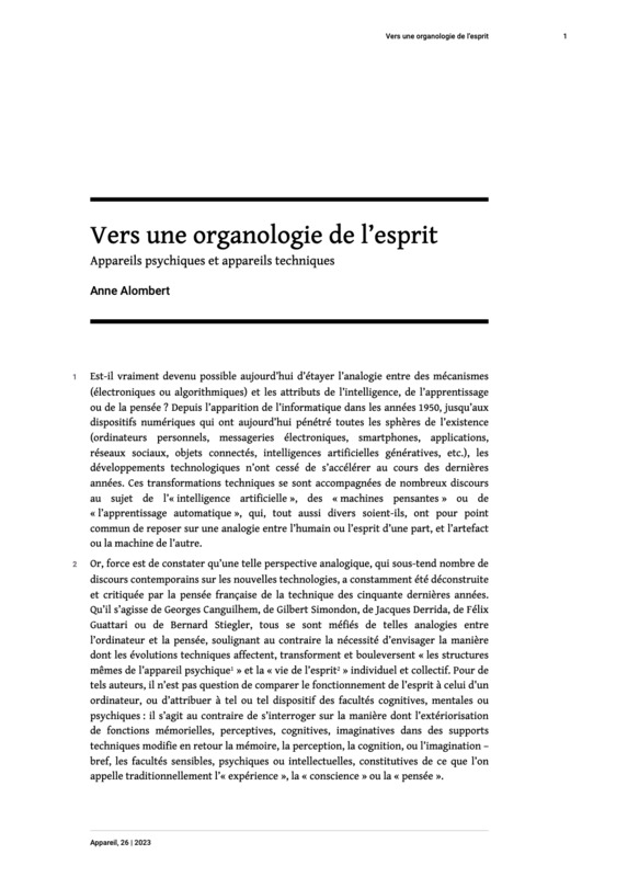 - Vers une organologie de l’esprit. Appareils psychiques et appareils techniques