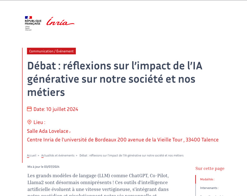 - https://www.inria.fr/fr/debat-impact-llm-ia-generative-science-societe-talence-juillet-2024