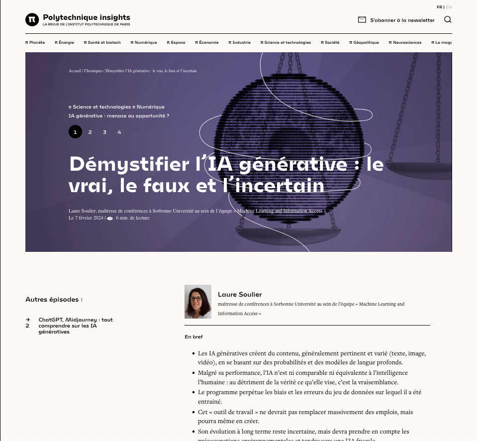 - Démystifier l’IA générative : le vrai, le faux et l’incertain - Une Tribune à découvrir sur Polytechnique Insights