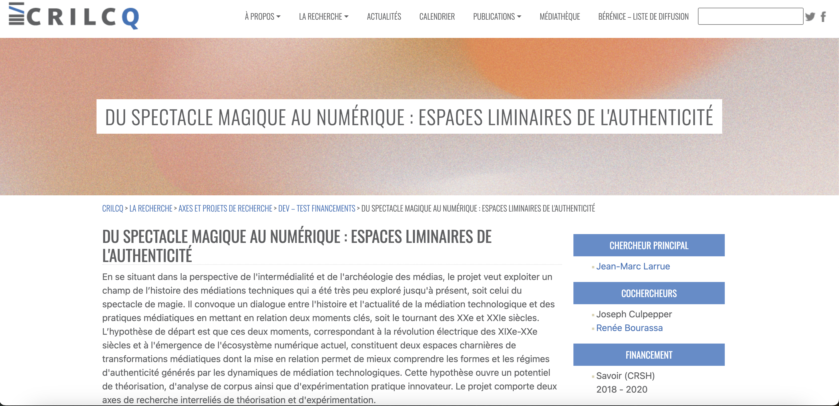 De SMEL (Du spectacle magique au numérique : espaces liminaires de l'authenticité) aux Arcanes | Conference |