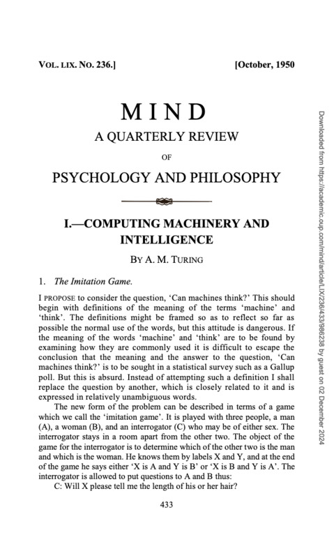 I. - Computing Machinery and Intelligence