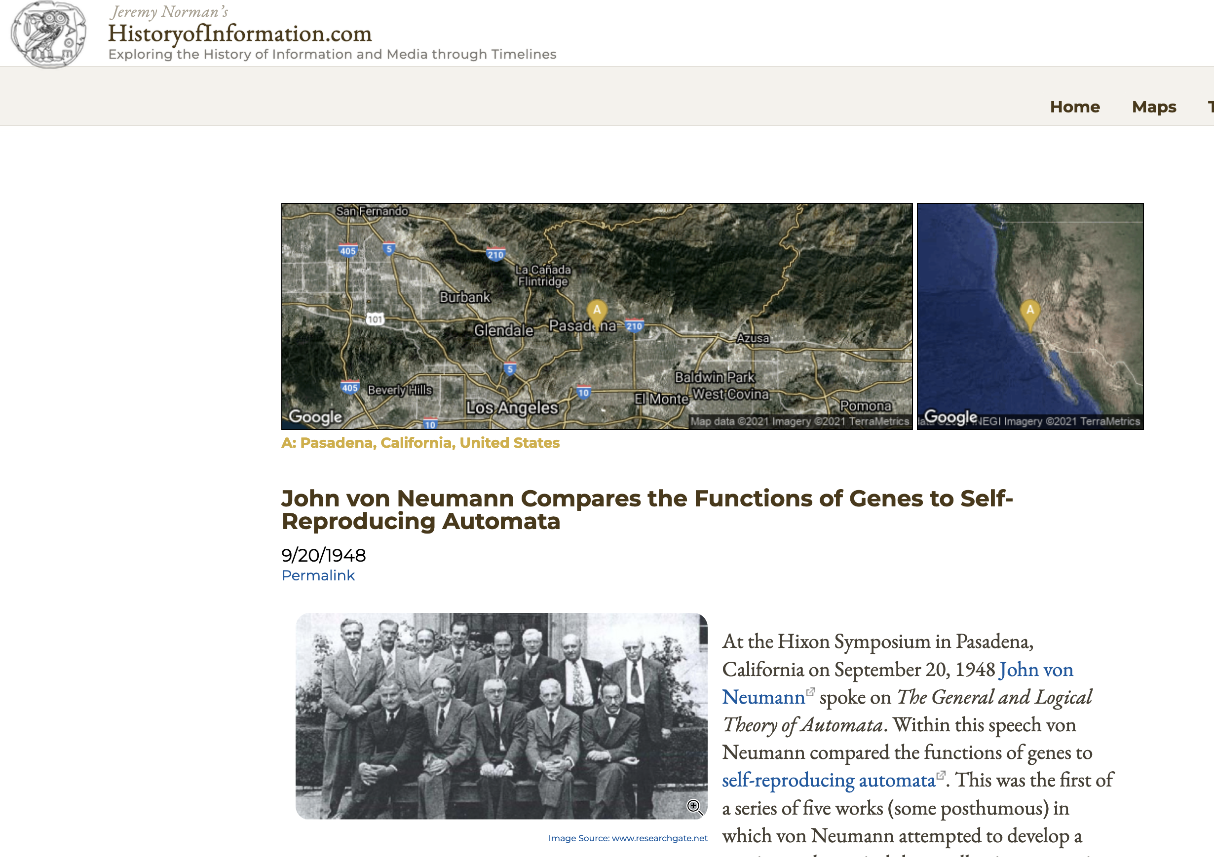 - John von Neumann Compares the Functions of Genes to Self-Reproducing Automata : History of Information