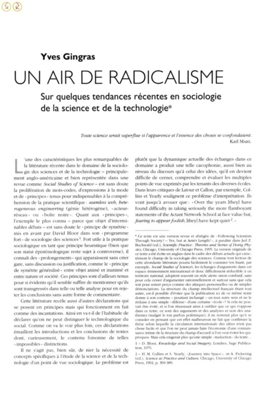 - Ein Hauch von Radikalismus Der Text unternimmt die kritische Analyse einiger neuerer Arbeiten der Soziologie der Wissenschaften, in denen die Terminologie der « Akteure im Verbund » und der « heterogenen Veranlagung» Anwendung findet. Ausführlich wird der Frage nachgegangen, wie diese Begriffe in der Beschreibung empirischer Studien vorgestellt, begrundet und verwendet werden und im Anschlufê an dièse kritische Untersuchung ein seinem Anspruch nach reflexives, soziologisches Modell wissenschaftlicher Praxis vorgestellt, das — ausgehend von den gegenwärtigen Kenntnissen der Mikro-Dynamik der Forschung — dabei ebenfalls die in der Mikro-Analyse unsichtbar bleibenden strukturellen Zwänge der wissenschaftlichen Praxis nicht unberucksichtigt laßt. Das Modell versucht innerhalb der unendlichen, in den zahlreichen Mikro-Geschichten wissenschaftlichen Handelns aufgedeckten Variationen die ihnen einheitlichen Konstanten zu erkennen und festzuhalten.
