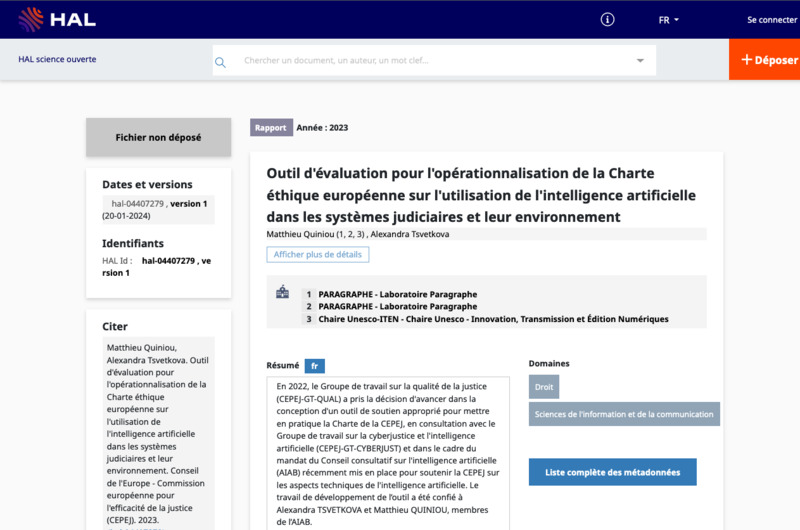 - En 2022, le Groupe de travail sur la qualité de la justice (CEPEJ-GT-QUAL) a pris la décision d'avancer dans la conception d'un outil de soutien approprié pour mettre en pratique la Charte de la CEPEJ, en consultation avec le Groupe de travail sur la cyberjustice et l'intelligence artificielle (CEPEJ-GT-CYBERJUST) et dans le cadre du mandat du Conseil consultatif sur l'intelligence artificielle (AIAB) récemment mis en place pour soutenir la CEPEJ sur les aspects techniques de l'intelligence artificielle. Le travail de développement de l’outil a été confié à Alexandra TSVETKOVA et Matthieu QUINIOU, membres de l’AIAB.