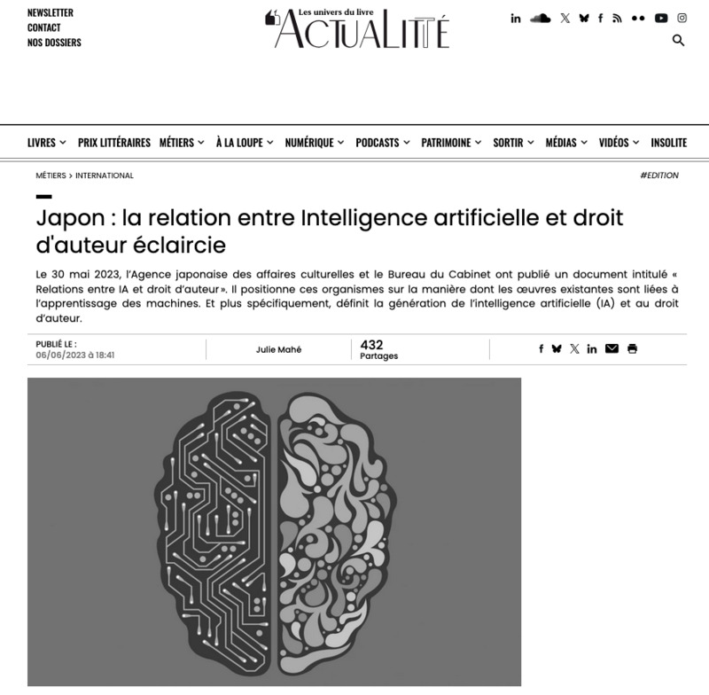 - https://actualitte.com/article/112030/international/japon-la-relation-entre-intelligence-artificielle-et-droit-d-auteur-eclaircie