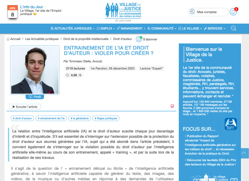 - https://www.village-justice.com/articles/intelligence-artificielle-droit-auteur-entrainement-violer-pour-creer,48301.html
