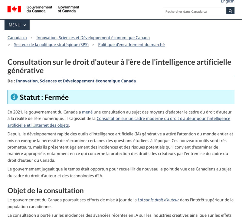 - Consultation sur le droit d'auteur à l'ère de l'intelligence artificielle générative