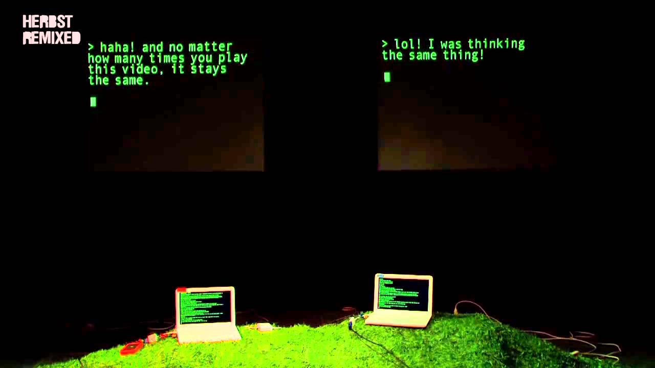 Peut-on encore parler de « pièce de théâtre » lorsque les acteurs sont deux MacBooks ? Cette performance inhabituelle, imaginée par la metteuse en scène new-yorkaise Annie Dorsen, illustre jusqu’à quel point un humain peut être remplacé par une machine. Les deux machines débattent de la nature humaine et des multiples facettes de l’intelligence dans une conversation basée sur la discussion historique entre Foucault et Chomsky. Dorsen utilise ce matériau, enrichi de textes supplémentaires extraits de YouTube, de la Bible, de Shakespeare, des grands classiques de la philosophie occidentale et d'autres sources, pour construire des programmes capables de générer un dialogue « improvisé ».