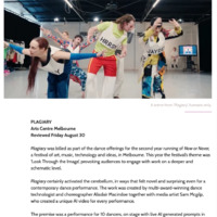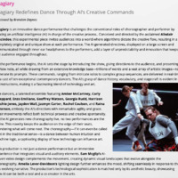 « Plagiary est une performance de danse expérimentale qui fait appel à l’intelligence artificielle en tant que chorégraphe et dramaturge, générant en direct un spectacle entièrement nouveau à chaque représentation en collaboration avec des improvisateur.ices de danse contemporaine. Plagiary est une création du chorégraphe et technologue de la danse primé Alisdair Macindoe, qui explore depuis 2018 les instructions chorégraphiques générées par ordinateur.