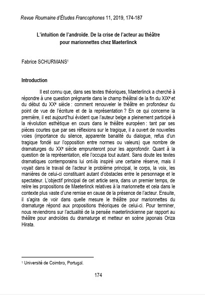 - L’intuition de l’androïde. De la crise de l’acteur au théâtre pour marionnettes chez Maeterlinck