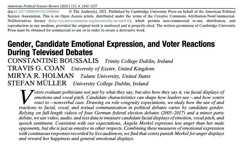 Gender, Candidate Emotional Expression, and Voter Reactions During Televised Debates