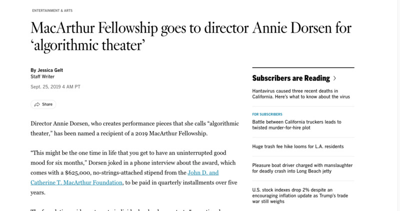 - https://www.latimes.com/entertainment-arts/story/2019-09-24/macarthur-fellowship-annie-dorsen-algorithmic-theater