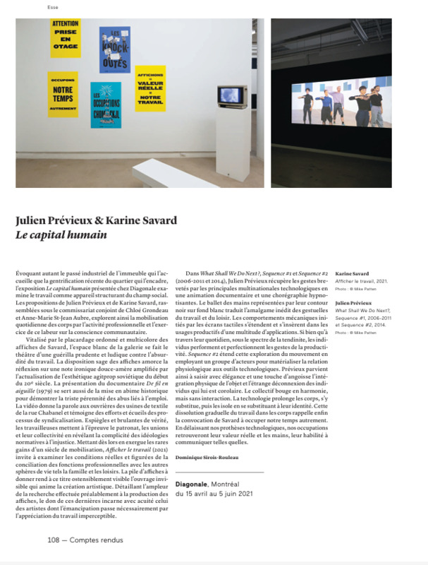 - Julien Prévieux & Karine Savard, Le capital humain, Diagonale, Montréal