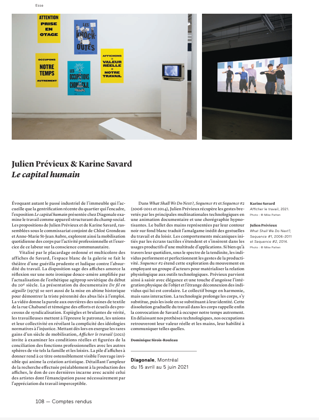 Julien Prévieux & Karine Savard, Le capital humain, Diagonale, Montréal