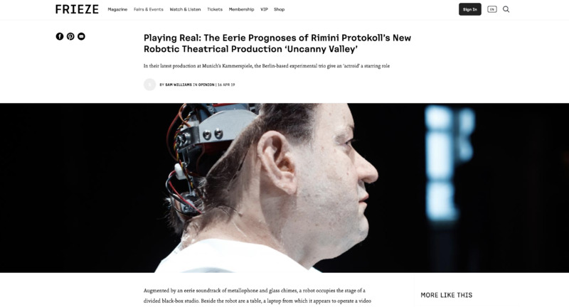 - Playing Real: The Eerie Prognoses of Rimini Protokoll’s New Robotic Theatrical Production ‘Uncanny Valley’