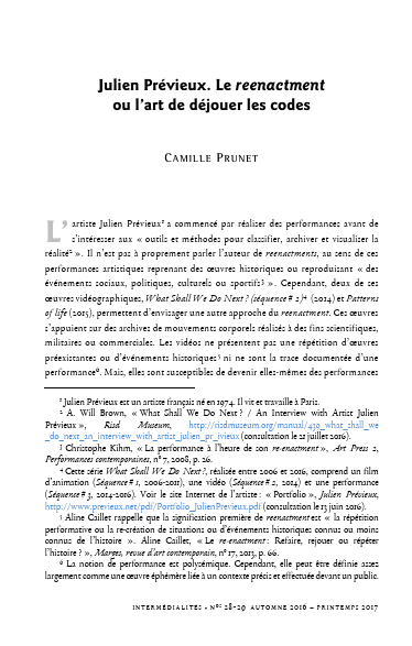 - Julien Prévieux. Le reenactment ou l’art de déjouer les codes