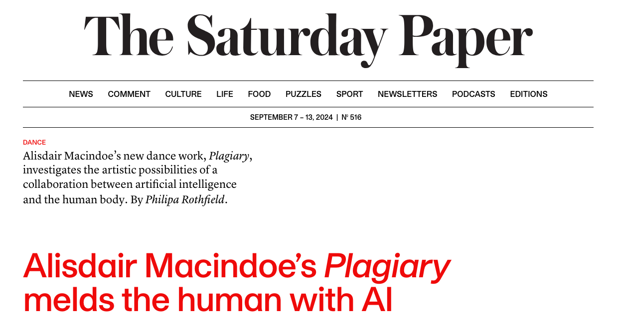 Alisdair Macindoe’s new dance work, Plagiary, investigates the artistic possibilities of a collaboration between artificial intelligence and the human body.