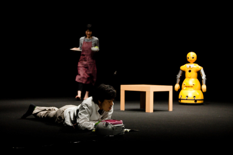 Items with "Contenu à relier / annoter (ressource physique, actant, conceptuelle): I, Worker - Scène du spectacle avec Yuuji, Momoko Robovie R3 et Ikue"