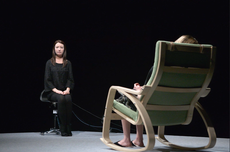 Dans Sayonara d’Oriza Hirata, l’androïde Geminoid F est investi de deux missions traditionnellement réservées aux humains : accompagner une jeune femme mourante lors de sa dernière nuit, puis se rendre dans la zone d’exclusion de Fukushima pour y réciter des prières funéraires. Ces tâches à forte charge symbolique et rituelle sont historiquement associées à des figures humaines – prêtres, proches, guides spirituels – dont la fonction est de produire du sens face à la mort. Leur délégation à un robot constitue une rupture majeure avec les conventions anthropocentriques du rituel funéraire pour un public occidental. Elle redéfinit la présence robotique sur scène en la dotant d’une agentivité symbolique et d’une capacité d’affectation que l’on croyait jusqu’ici réservée au vivant.