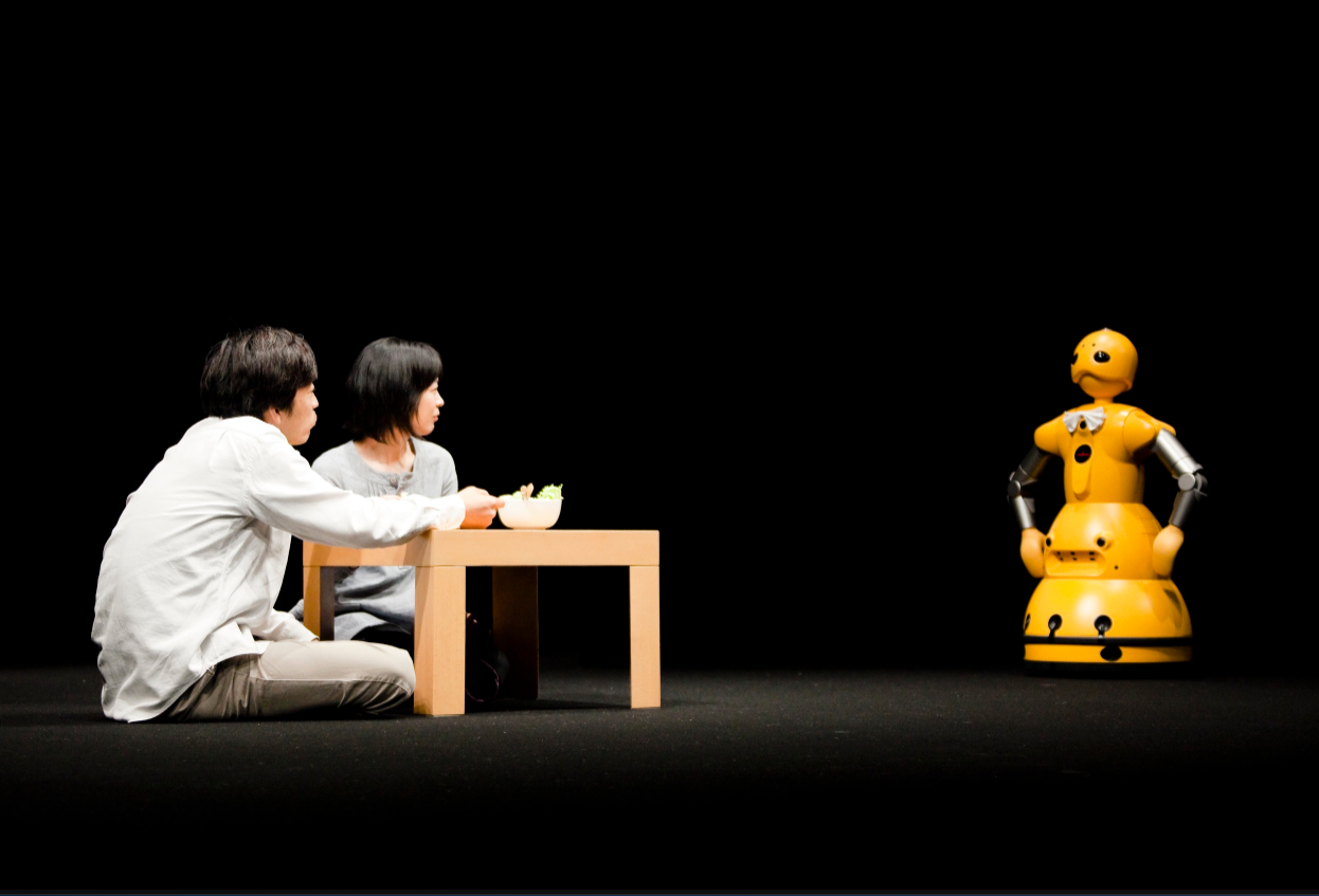 Ce glissement est au cœur de la force critique de Sayonara. Le malaise que suscite la pièce ne naît pas d’un choc frontal avec l’inhumain, mais d’une proximité troublante, d’un frottement doux avec un présent légèrement altéré. En insérant le robot dans un quotidien familier — celui des soins, de la mort, de la récitation poétique — Hirata révèle que ces présences ne sont pas à venir : elles sont déjà parmi nous, intégrées et fonctionnelles.