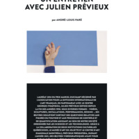 Julien Prévieux, lauréat du prix Marcel Duchamp en 2014, développe depuis la fin des années 1990 une pratique artistique transdisciplinaire qui explore les mécanismes de pouvoir à l’œuvre dans les systèmes de quantification, de contrôle et de standardisation. Son travail, à la croisée de la vidéo, des arts vivants, de l’installation et de l’art conceptuel, interroge de manière critique les formes contemporaines de gouvernementalité, en particulier dans les domaines du travail, de l’économie, de la politique et des technologies. Prévieux détourne les outils mêmes de la rationalité technoscientifique — listes, schémas, classifications, procédures d’archivage — pour révéler leur dimension performative et normative sur les cultures humaines. Son geste artistique consiste ainsi à retourner les dispositifs de savoir sur eux-mêmes, en réorientant leur visée instrumentale vers une fonction réflexive.