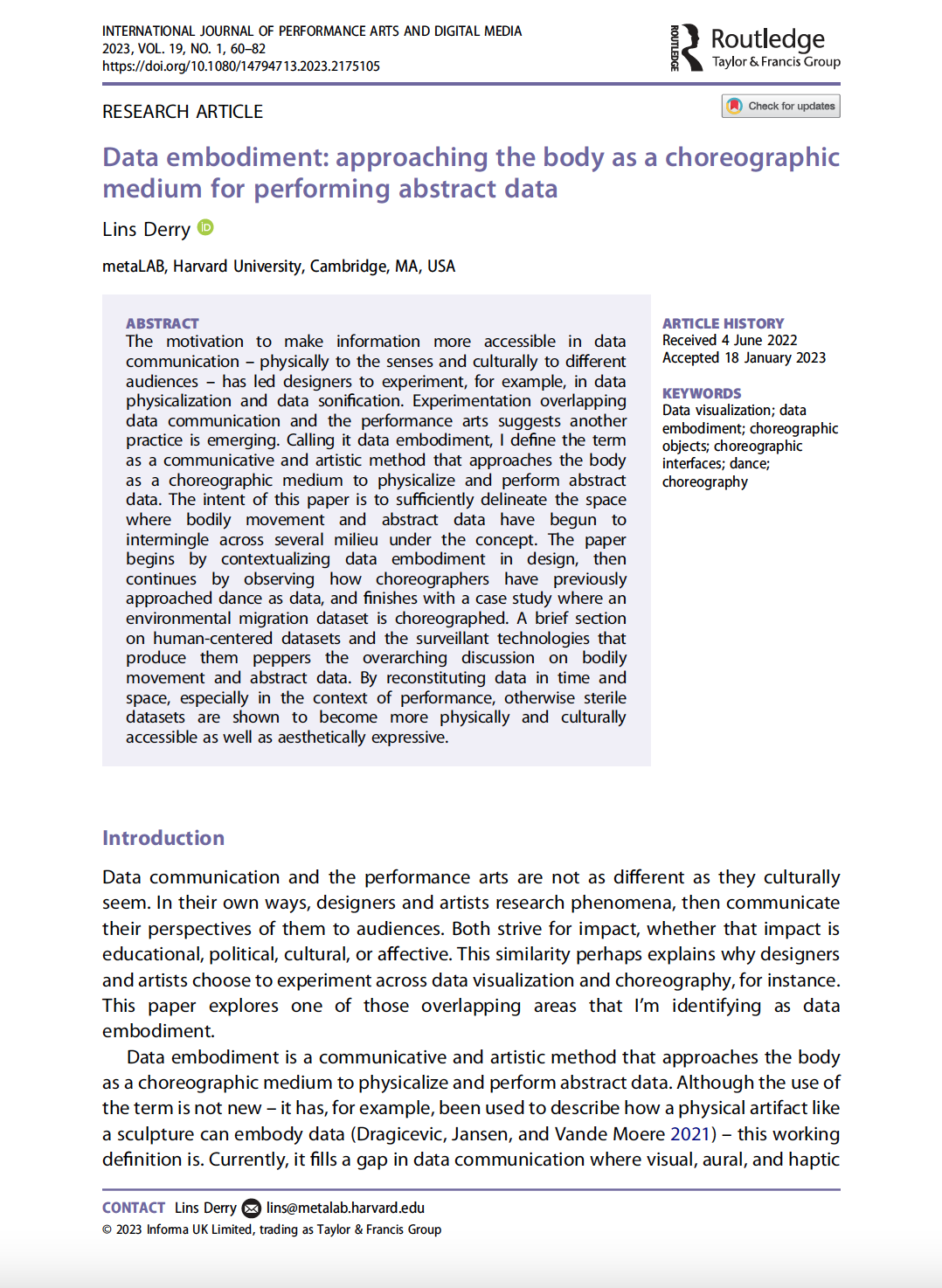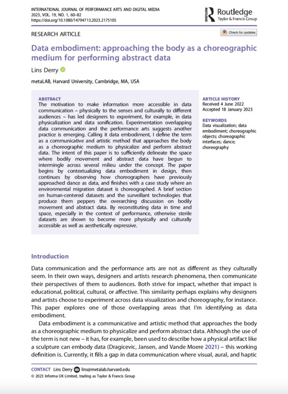 Data embodiment: approaching the body as a choreographic medium for performing abstract data