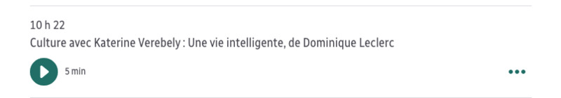 - Culture avec Katerine Verebely : Une vie intelligente, de Dominique Leclerc