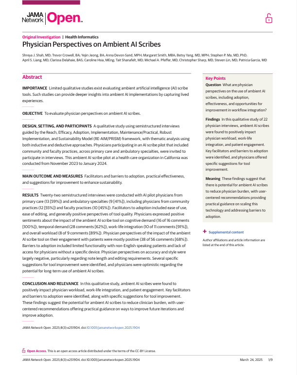 - Physician Perspectives on Ambient AI Scribes