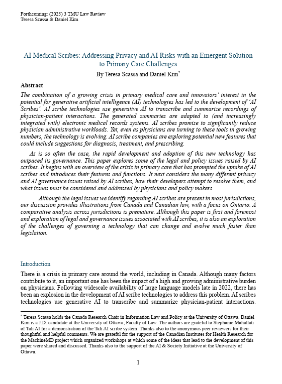 - AI Medical Scribes: Addressing Privacy and AI Risks with an Emergent Solution to Primary Care Challenges