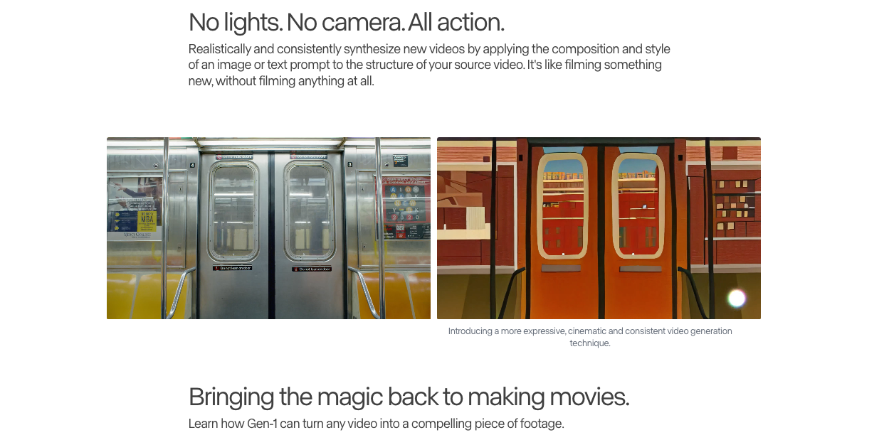 Runway articule un imaginaire d’hyper-créativité, où l’IA apparaît comme un vecteur d’accomplissement des capacités humaines plutôt qu’un substitut technique. Le discours met en scène une technologie capable de révéler et d’amplifier le potentiel expressif de chacun·e : une créativité sans friction, affranchie des contraintes matérielles, techniques et financières traditionnellement associées au cinéma et aux arts numériques. La formule publicitaire « bringing the magic back to making movies » condense cette logique : la machine ne remplace pas le geste artistique, elle restitue, voire libère, son essence, présentée comme un pouvoir latent que les outils traditionnels auraient entravé.