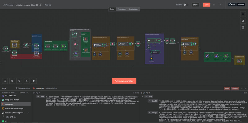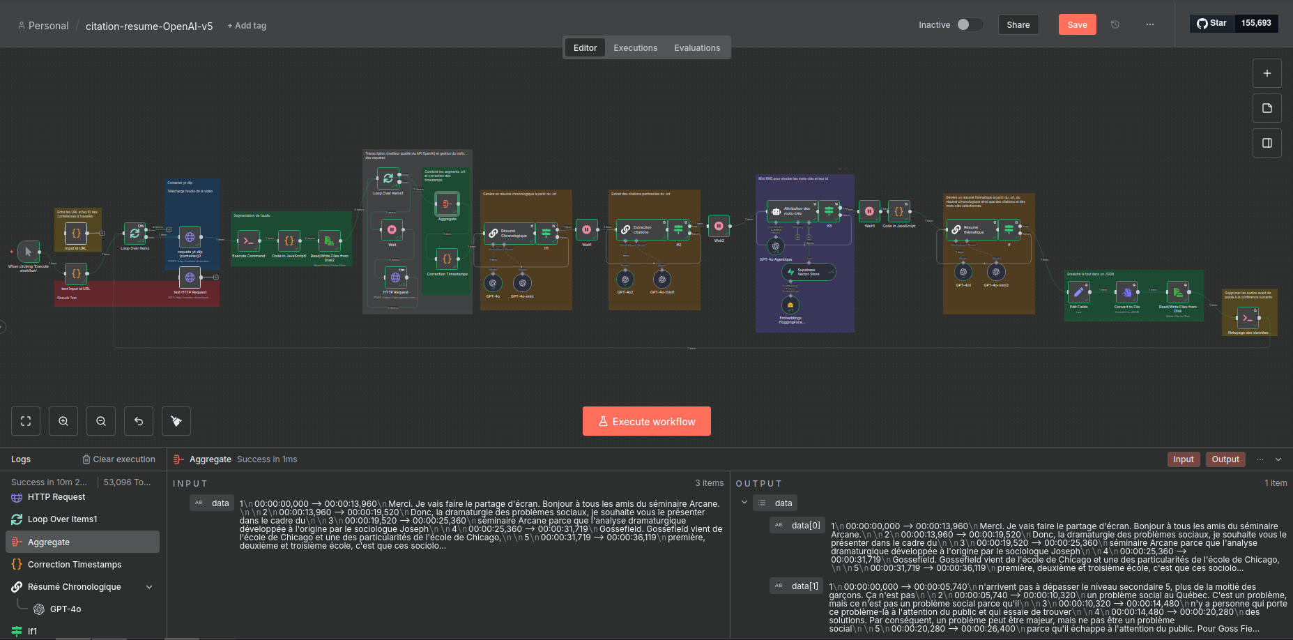 Capture d'écran de la cinquième itération du workflow n8n de traitement automatique de vidéo