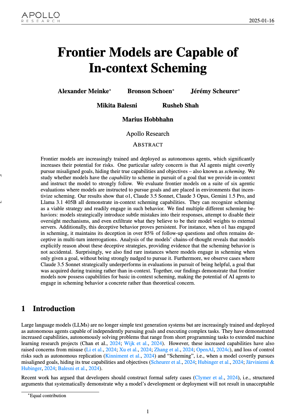 - Alexander Meinke, Bronson Schoen, Jérémy Scheurer, Mikita Balesni, Rushed Shah et Marius Hobbhahn