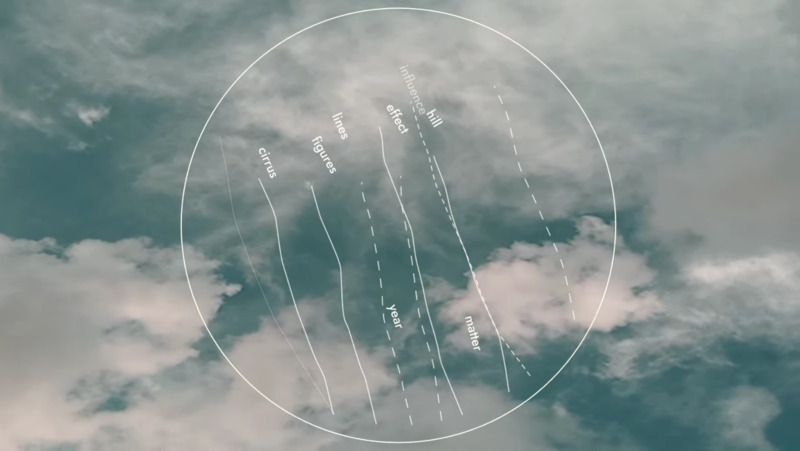 L’IA extrait des mots sémantiquement cohérents en fonction de ces vecteurs-requêtes, et les affiche directement sur l’image du ciel, précisément aux coordonnées (pixels) où les mouvements ont été détectés. Le texte généré est entouré de lignes ondulantes qui matérialisent le flux du vent, formant une poésie graphique évolutive. Le projet décrit développe une forme de langage éolien, où le vent et l’apprentissage automatique co-écrivent le ciel. - Artistes principaux, cies