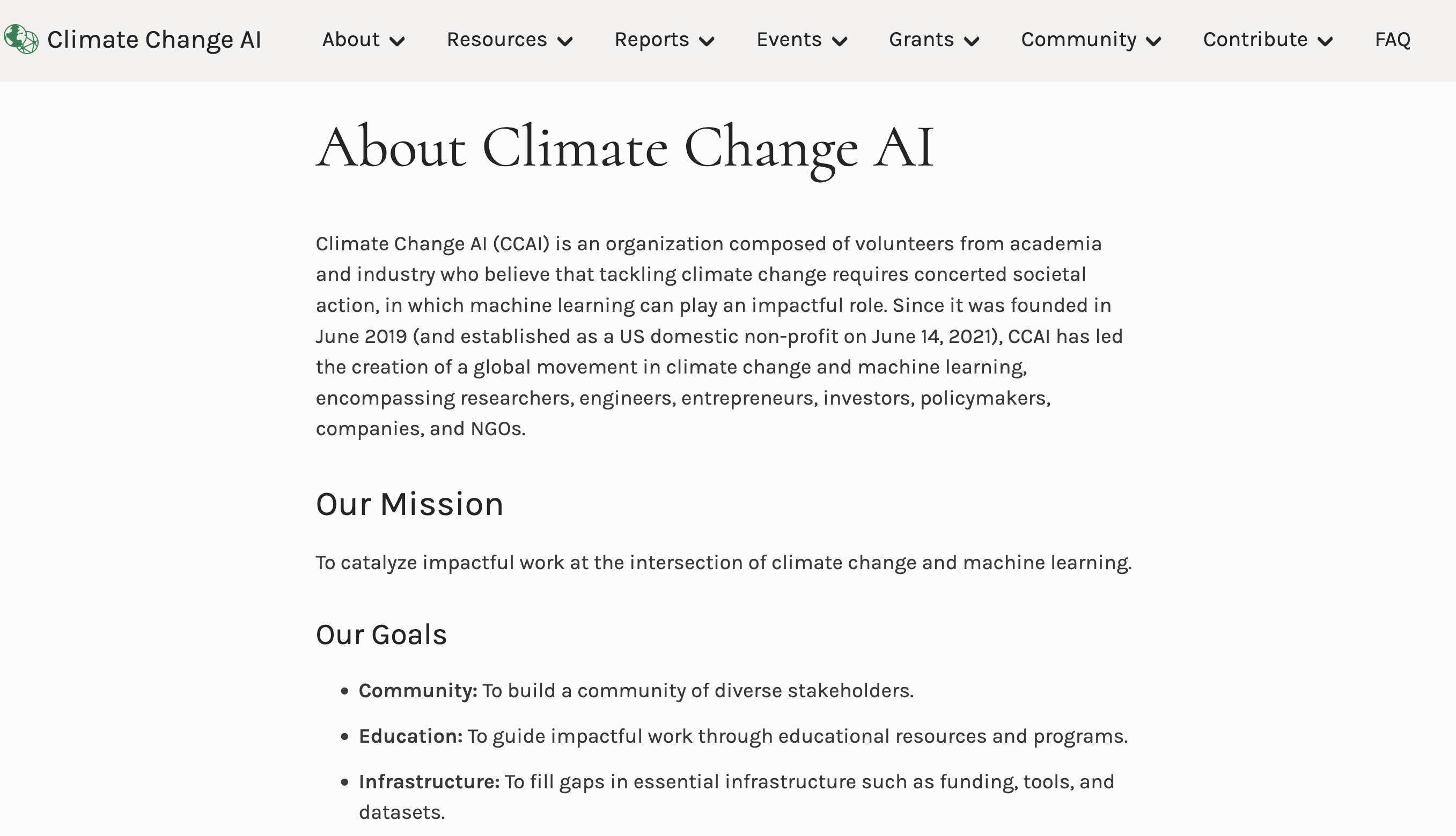 - Captures d'écran du site web Climate Change AI (CCAI)