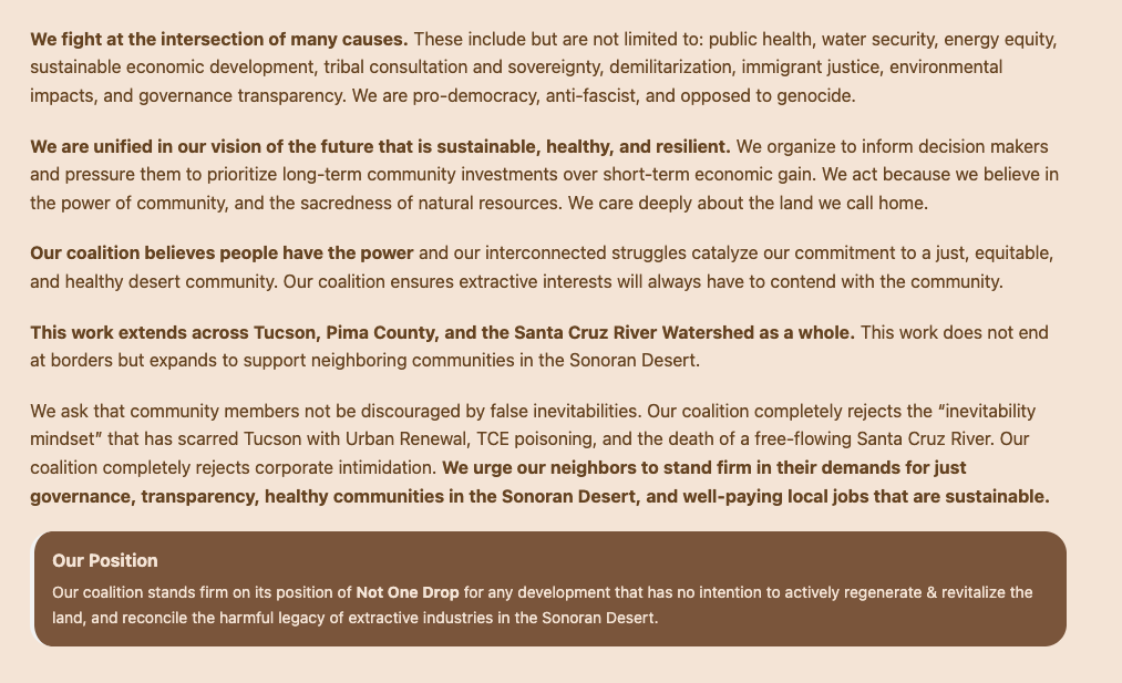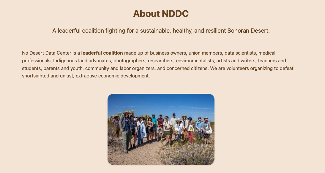 Items with "Organisme porteur, collectif, groupe militant, etc.: Captures d'écran du site web de No Desert Data Center Coalition"