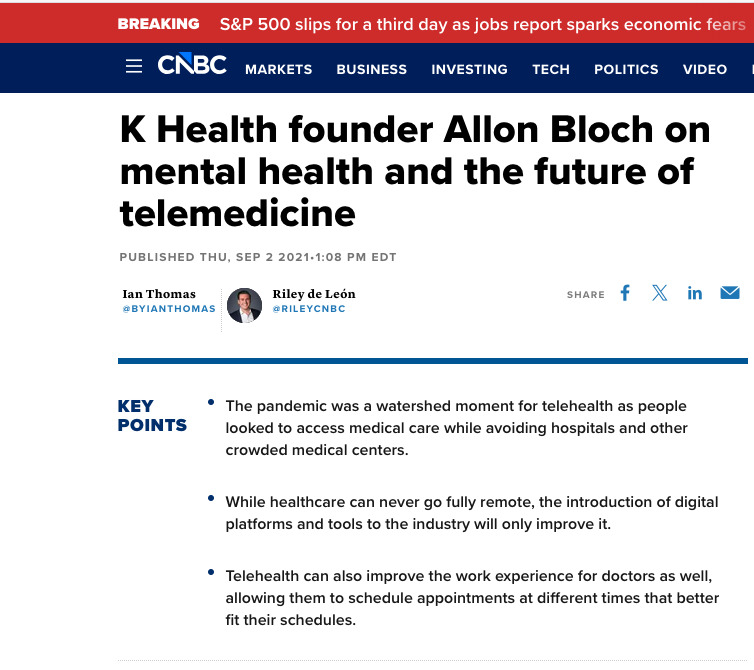 - https://www.cnbc.com/2021/09/02/k-health-founder-allon-bloch-on-mental-health-future-of-telemedicine.html
