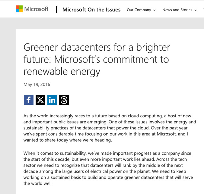 - https://blogs.microsoft.com/on-the-issues/2016/05/19/greener-datacenters-brighter-future-microsofts-commitment-renewable-energy/