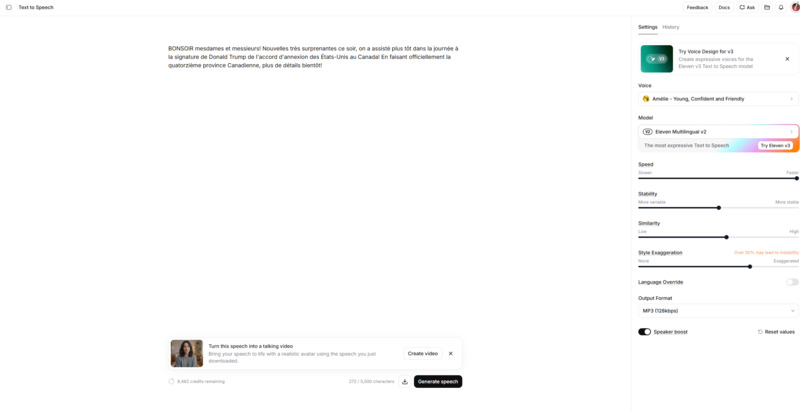 - Génération de la voix de la journaliste, et génération d'un clip "Image to lip-sync"