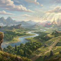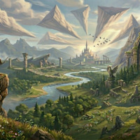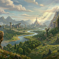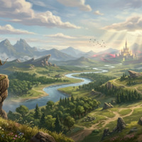 Painterly style, high detail, atmospheric perspective, soft lighting, warm and cool color contrast, epic scale.