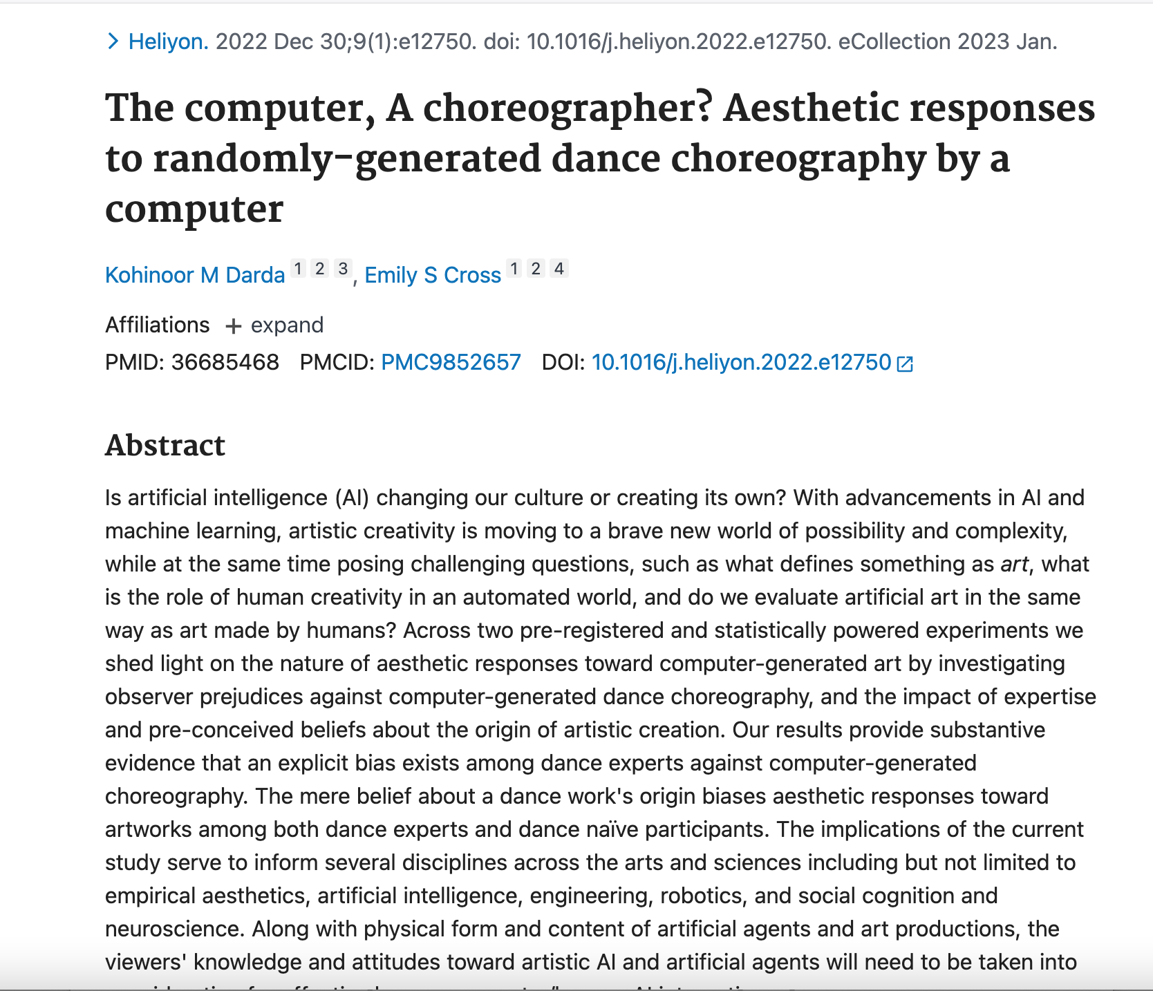- The computer, A choreographer? Aesthetic responses to randomly-generated dance choreography by a computer.
